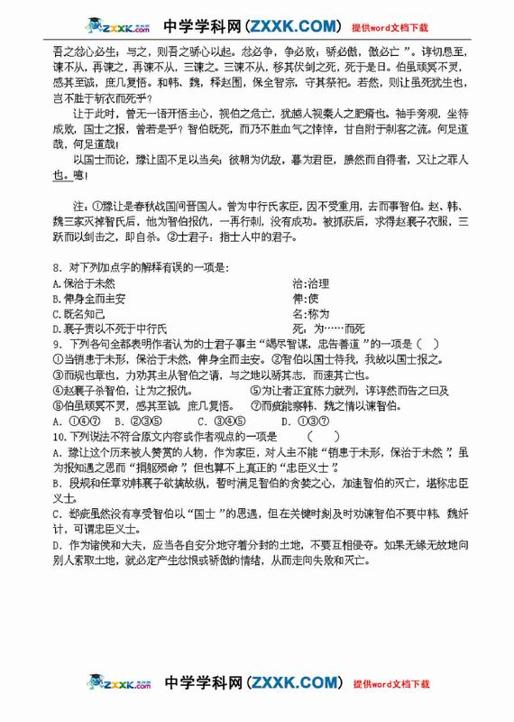 2011高考语文文言文预测及解析