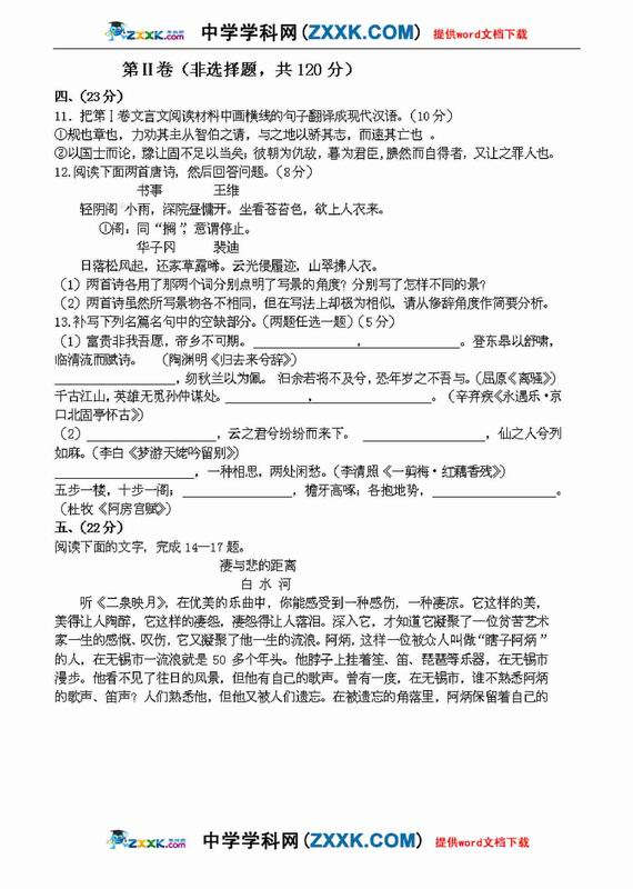 2011年山西高三第二次四校联考试题语文