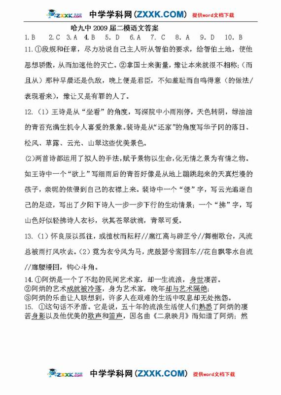 2009年哈尔滨九中高考模拟考试语文