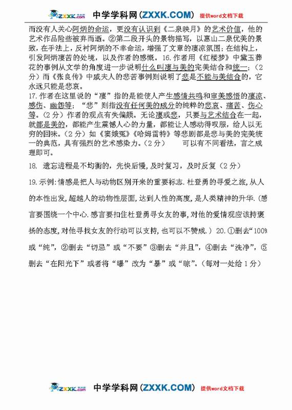 2009年语文高考应试答题技巧及评分标准