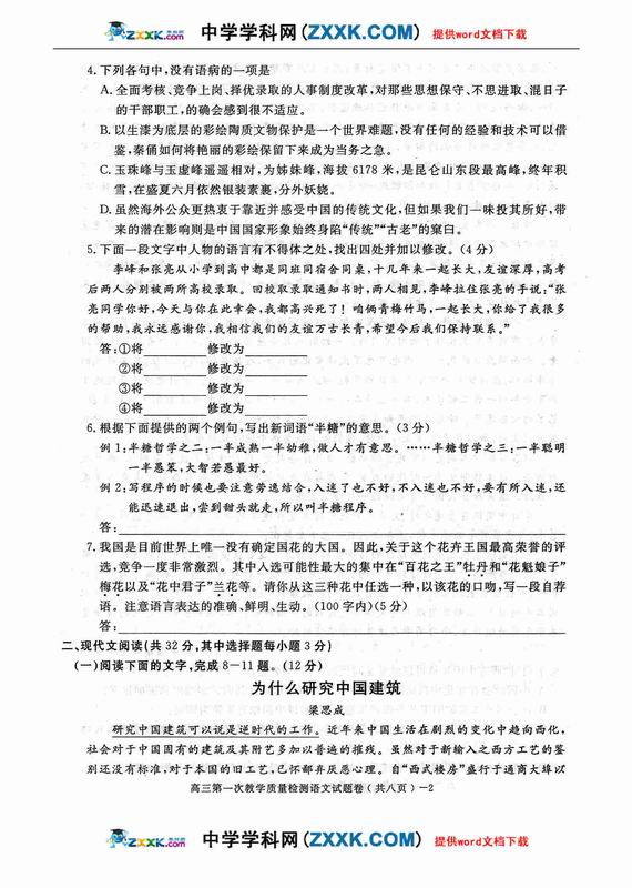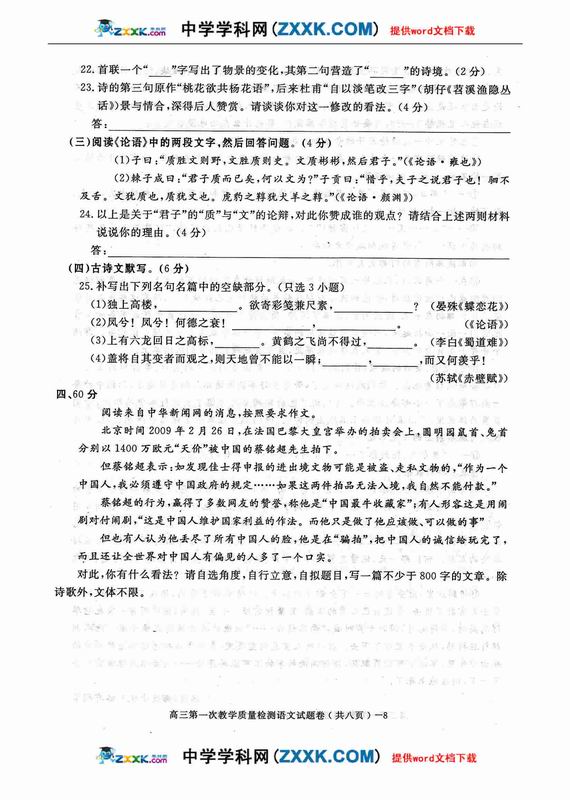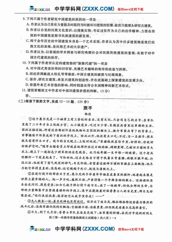 2009年哈尔滨九中高考模拟考试语文