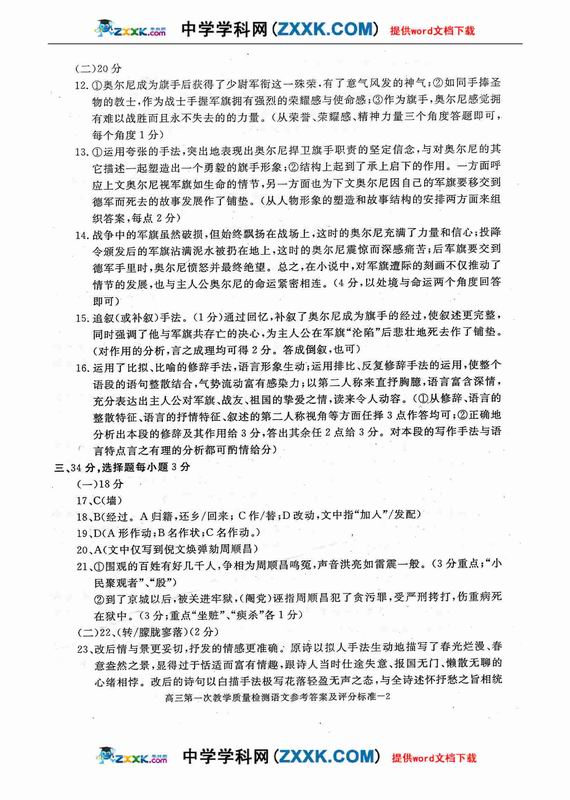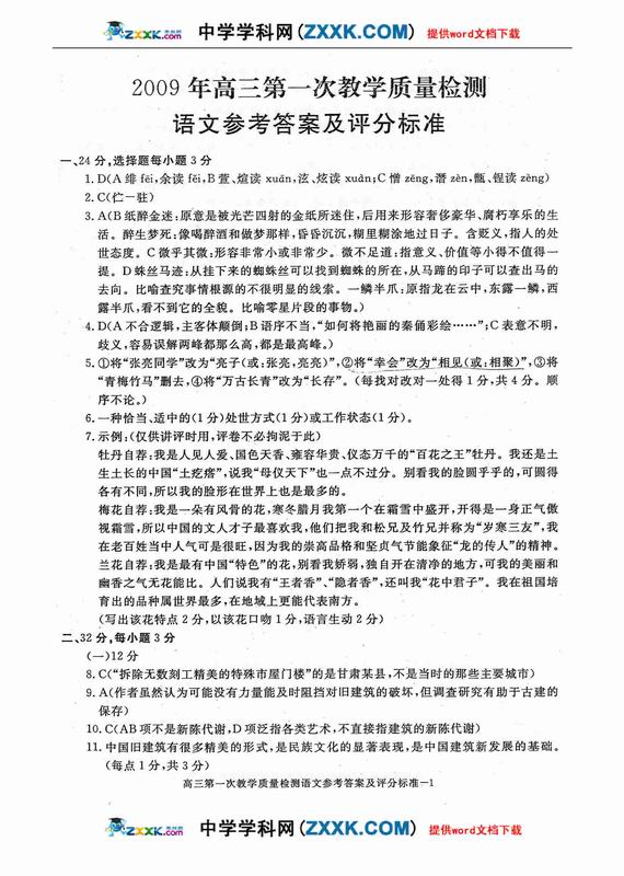 2009年语文高考应试答题技巧及评分标准