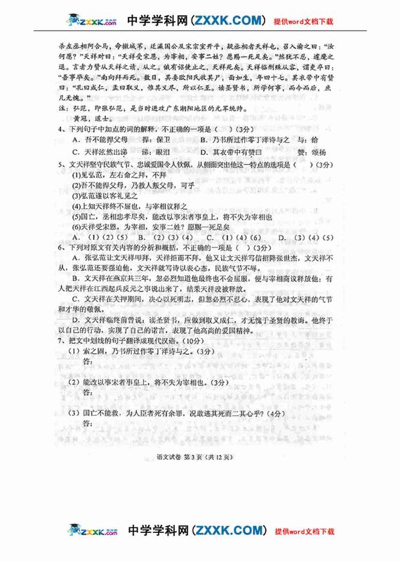 苏北四市09届高三第三次调研测试语文