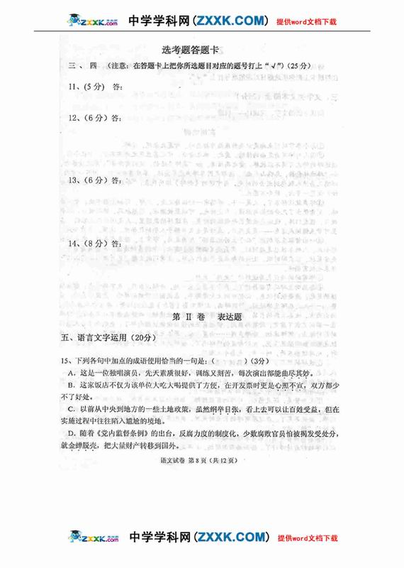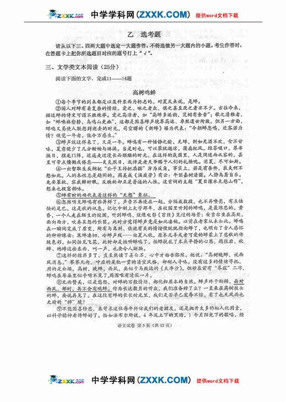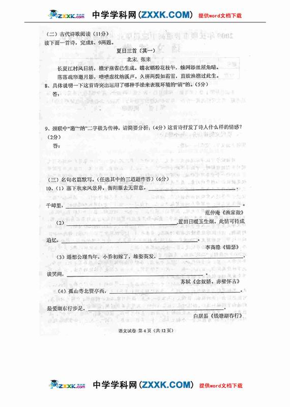 四川省德阳市高中09级“二诊”考试语文