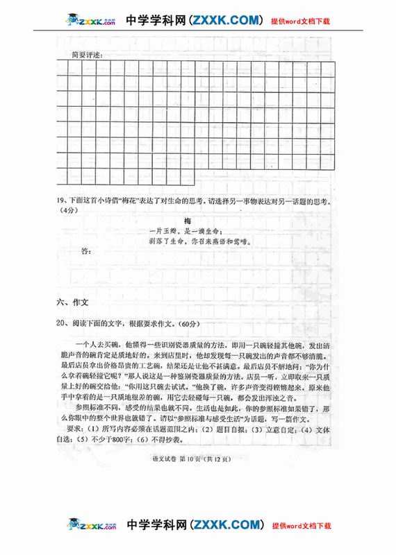 2010年高考语文作文试题模拟及答案