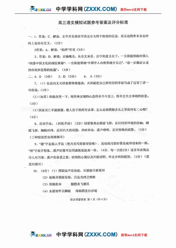 2009年语文高考应试答题技巧及评分标准