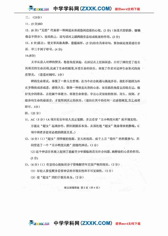 广东广州2011二模语文试题及答案