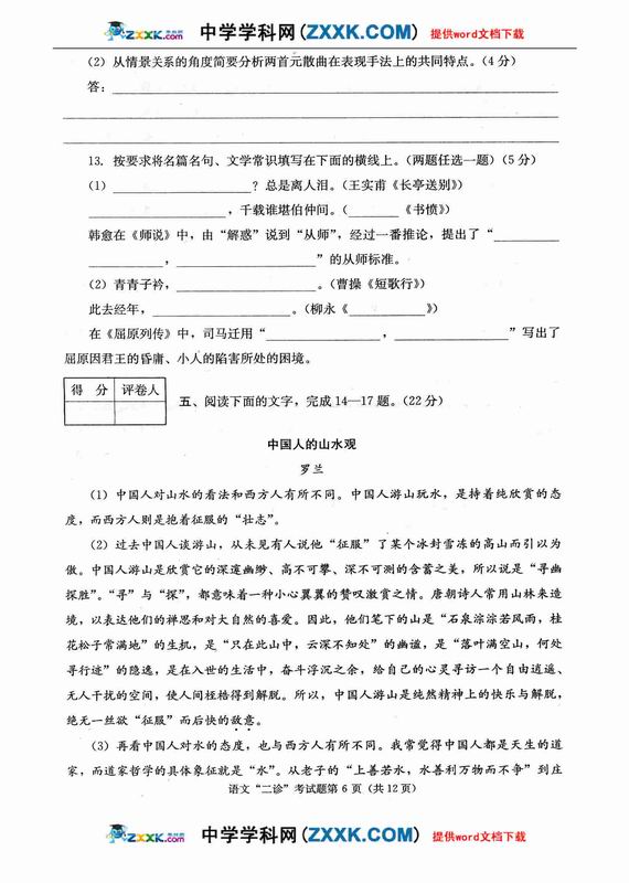 四川省德阳市高中09级“二诊”考试语文
