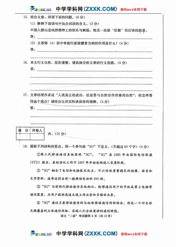 2009年语文高考应试答题技巧及评分标准