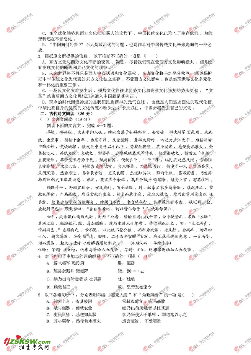 内蒙古包头一中2011年高考模拟考试试卷语文