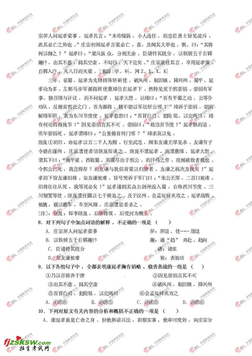 内蒙古包头一中2011年高考模拟考试试卷语文