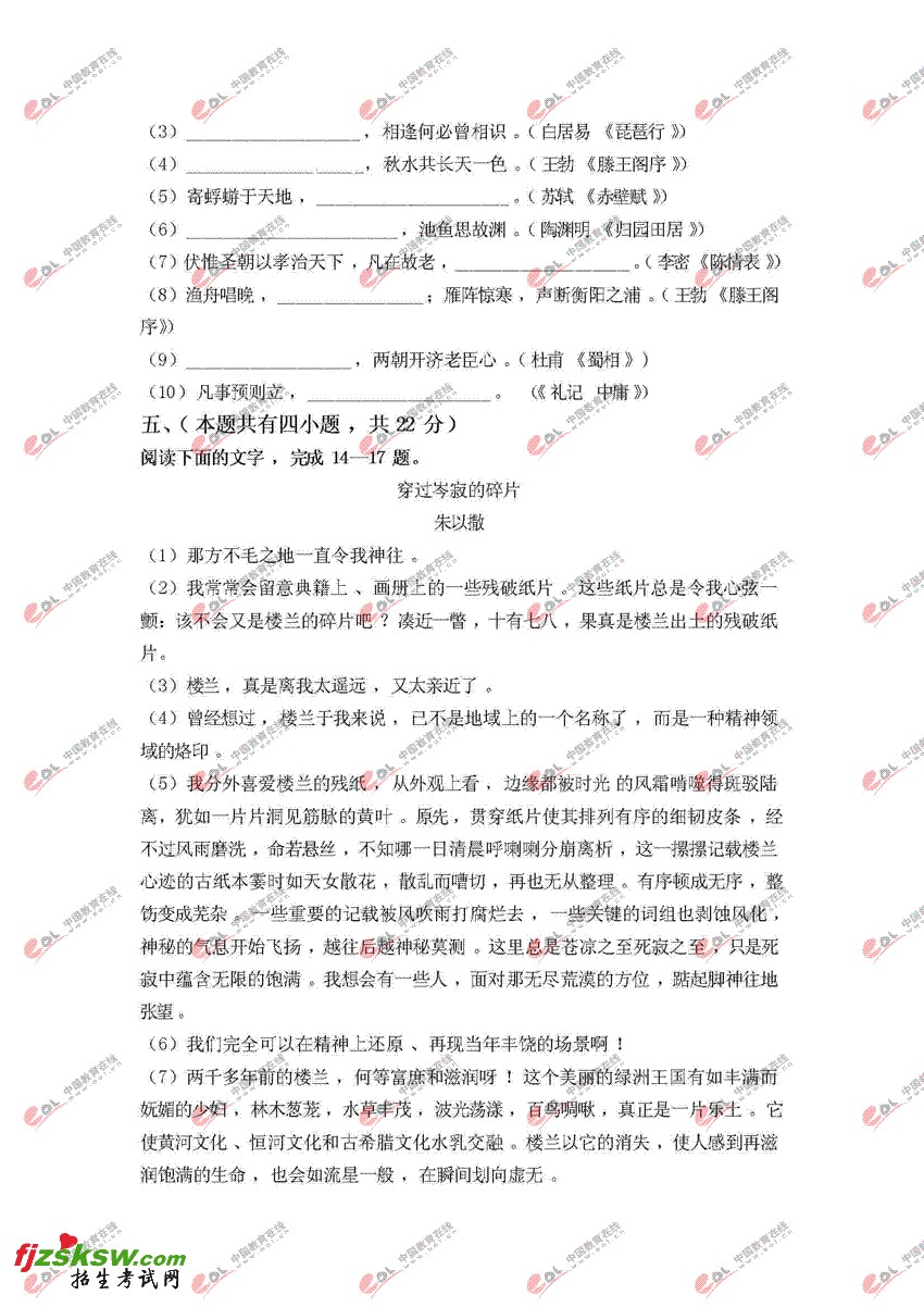 内蒙古包头一中2011年高考模拟考试试卷语文