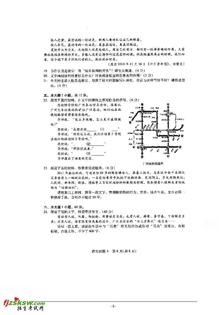 北京东城区2011高三第二学期高三综合语文试题及答案