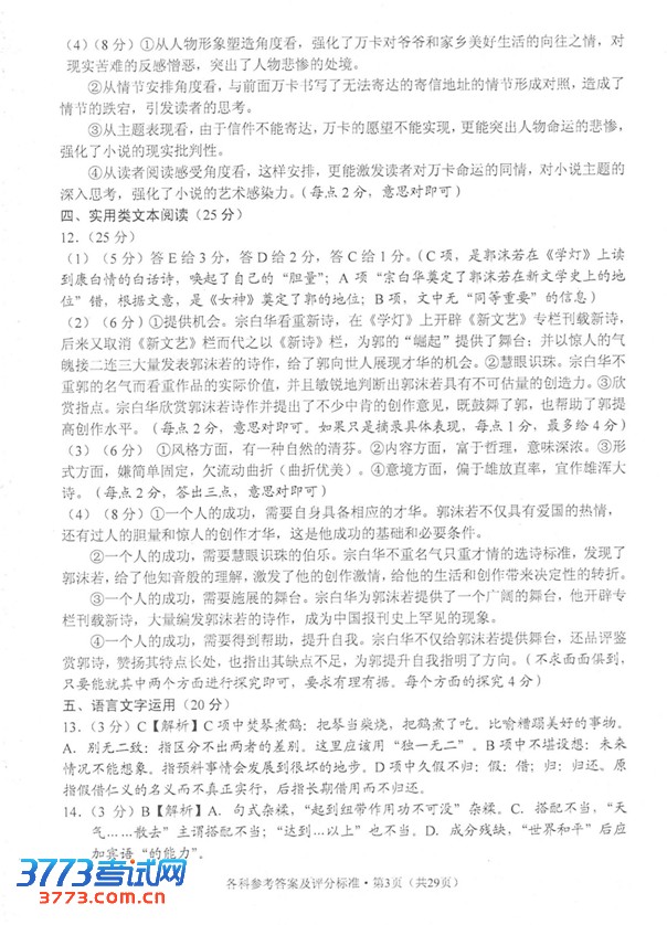 更多答案信息进入查看:http://www.2exam.com/gaokao/Special/ynmk/