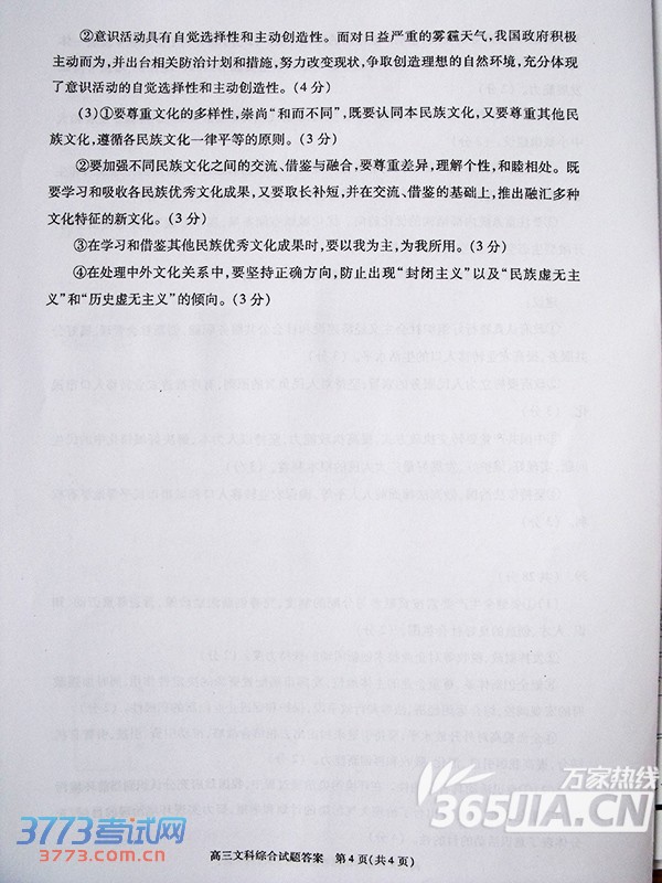 2016雅安三诊文综试题答案发布