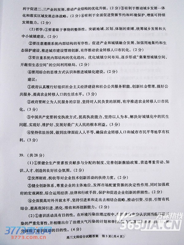 2016绵阳三诊文综试题答案发布