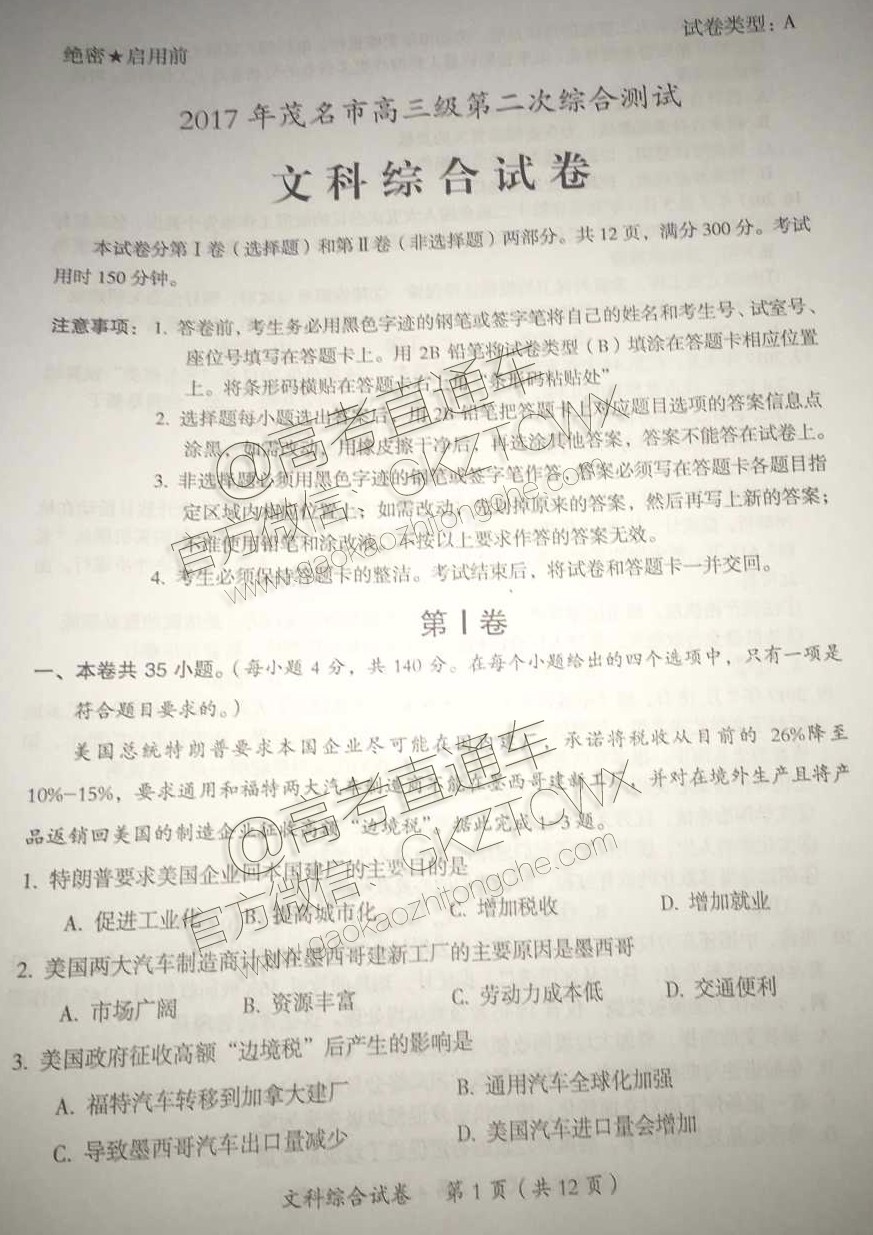 3773考试网 - 高考 - 高考模拟题 - 高考文综理综 - 正文