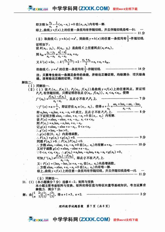 征订2012年福建3+文综/理综质检试卷答案评分标准