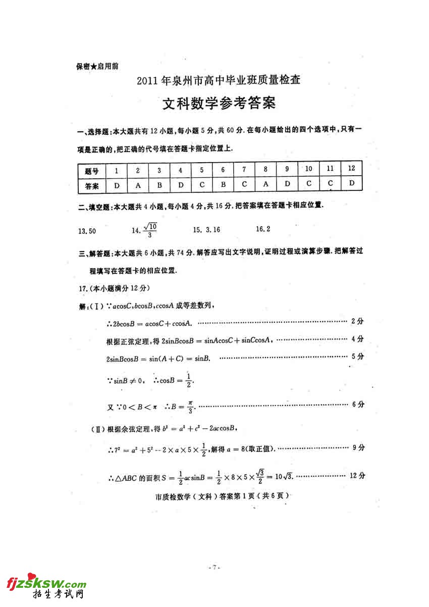 2011泉州市质检英语试题及答案