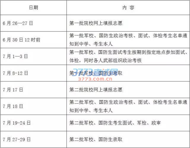 7月7日、7月底前,分别完成第一批、第二批军校、国防生考生的政治考核、面试、体检结论审定。