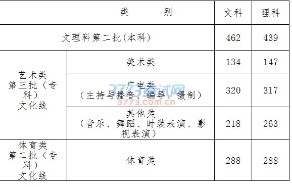 文理科第二批(本科) 462 439