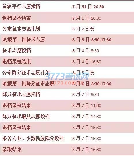 2016浙江二本三本录取时间安排(含艺术体育类
