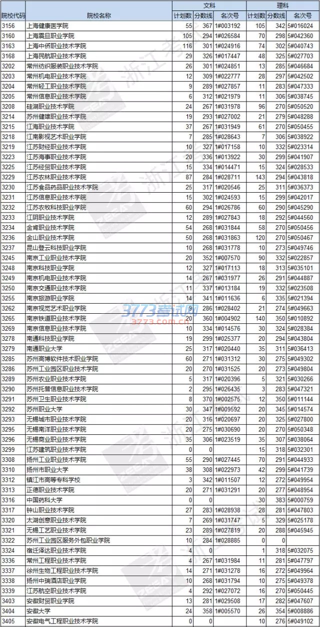 2016浙江高考专科院校投档分数线名次号公布