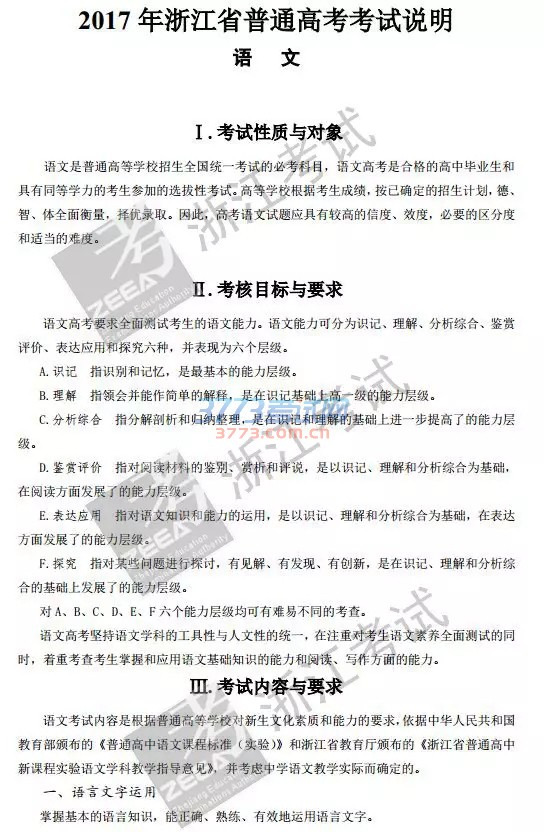 此前,浙江省早已公布普通高中学业水平考试暨高考选考科目考试说明。今天,2017年浙江新高考语文数学(6月份普通高考必考科目)考试说明也正式出炉啦!为此,浙考微君在第一时间将相关内容要求等重要信息提供给您,高三党们抓紧收藏备考咯。详细内容请参阅《浙江考试》期刊第10期。