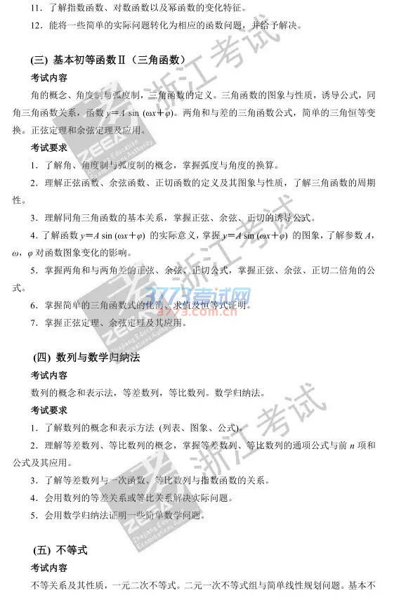 2017浙江高考数学考试大纲说明