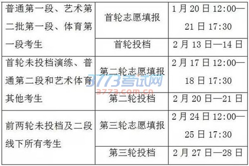 第一段考生先填报志愿,随即投档录取;未完成的剩余计划重新公布,未被录取的第一段考生和第二段考生填报志愿,再组织投档录取。以此类推。第三段投档录取后仍未完成的计划,可适当扩大比例征求志愿,具体比例视剩余计划与生源情况而定。