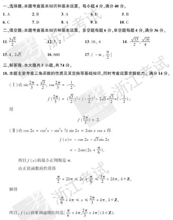 2017浙江高考数学试题及答案发布