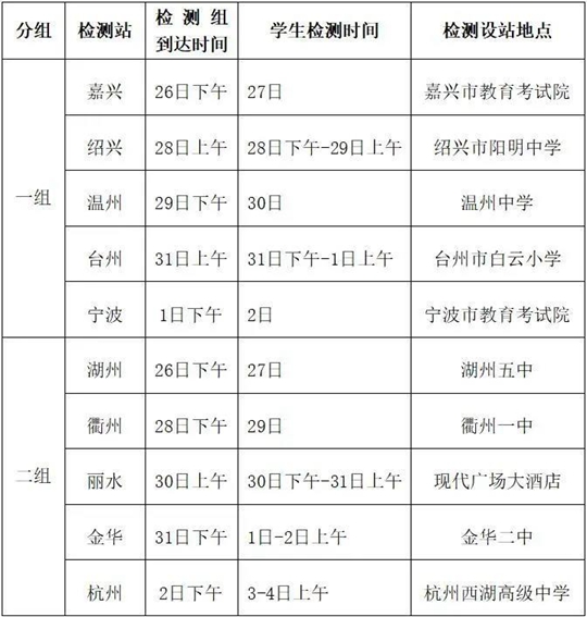 未设站的地市学生就近上站,个别需要调整上站地点的县区提前协调;舟山市宣传、初选一并组织,不单独设站检测;具体日程如有调整以通知为准。