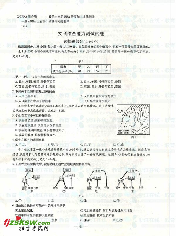 浙江省2011年高考文综真题及答案