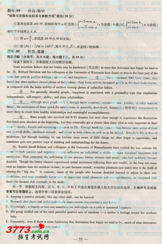 浙江省2011年高考英语真题及答案