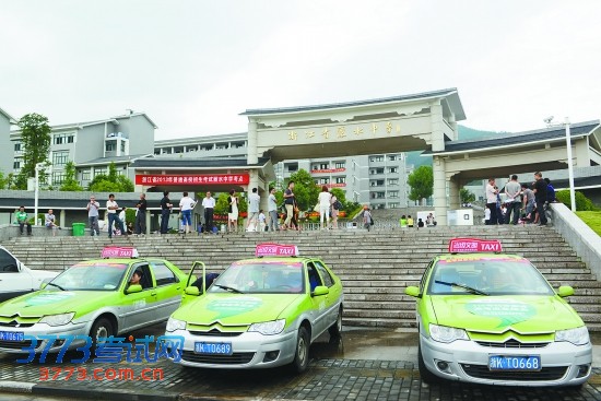 今天的天气对考生来说是个好天气,下过雨,空气清新凉爽,可以给考生一个应考的好心情,车牌号为浙KT889的驾驶员章师傅告诉我们说,他早晨5点就出门了,顺利了接送了一车考生到达二中考点。