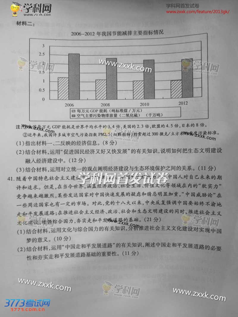 2013浙江高考文综试卷试题