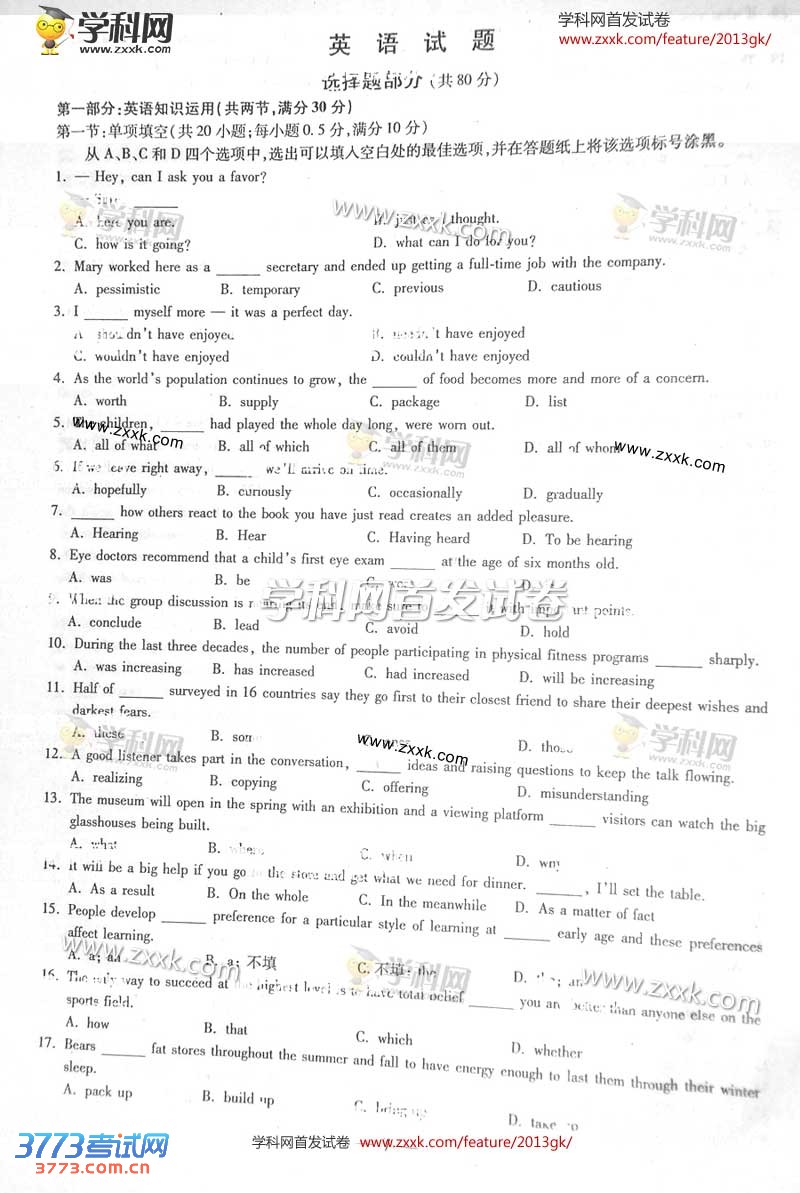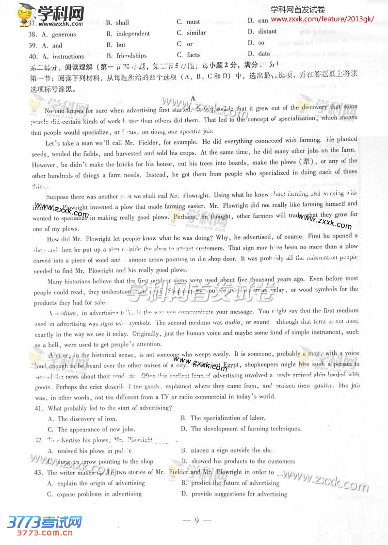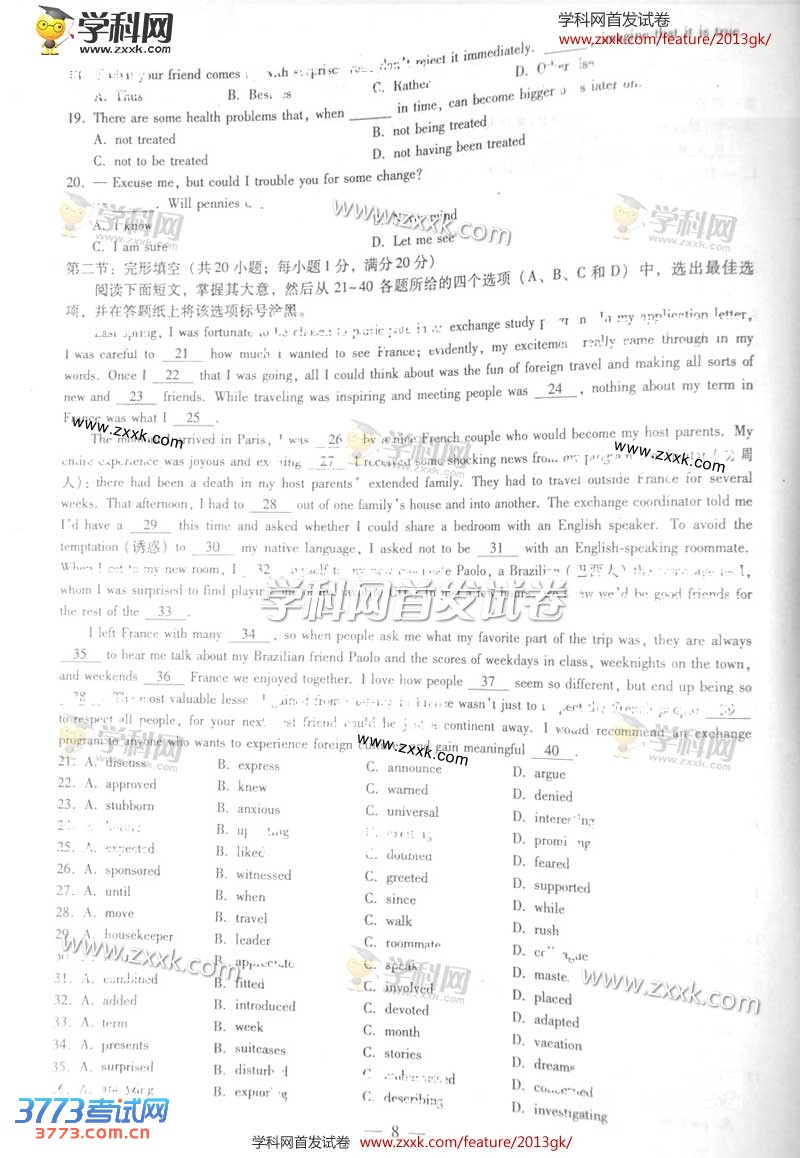 2013浙江高考英语试题及答案