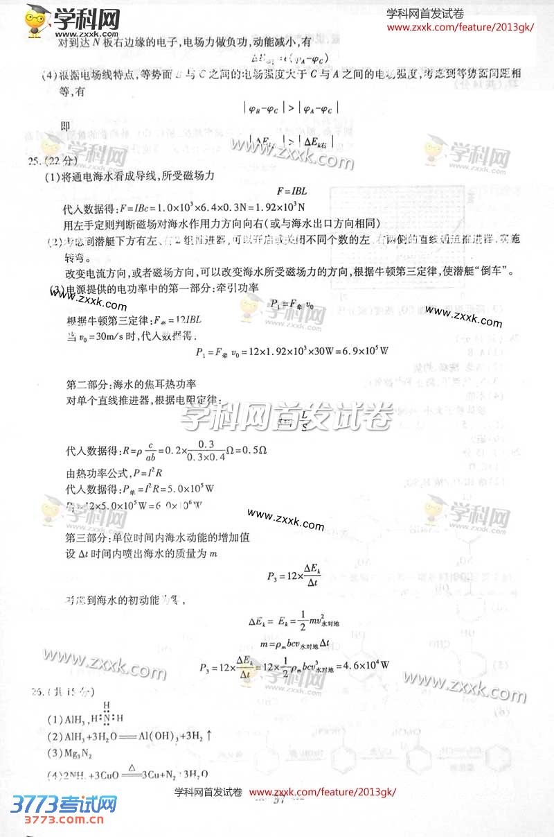 2013浙江高考理综试题及答案