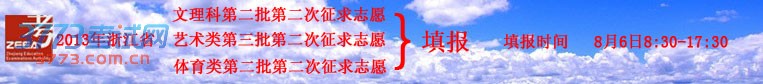 2013浙江高考艺术类三批体育类二批二次征求志愿通告