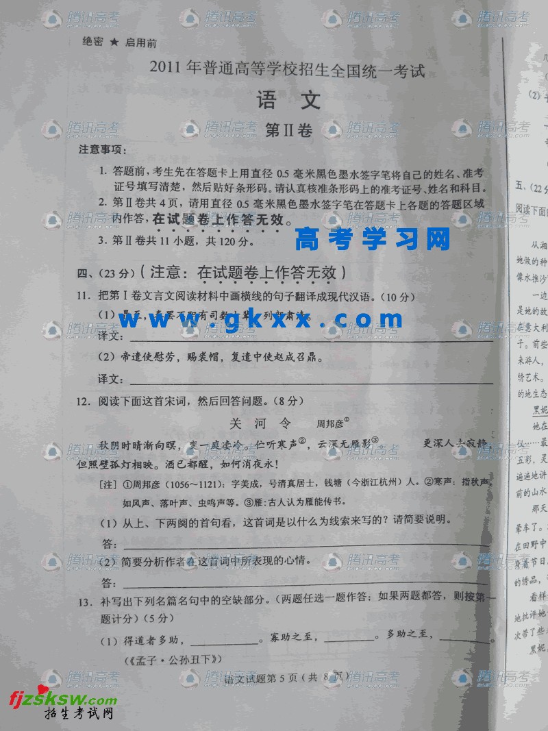 重庆2011年高考语文作文题目出炉:《情有独钟》