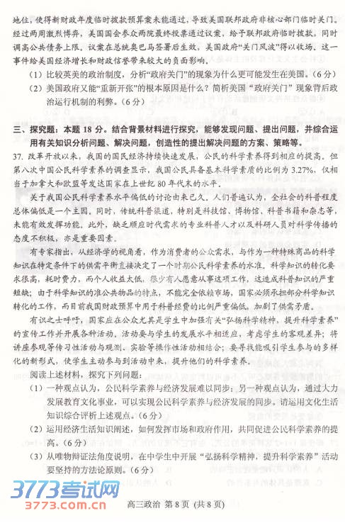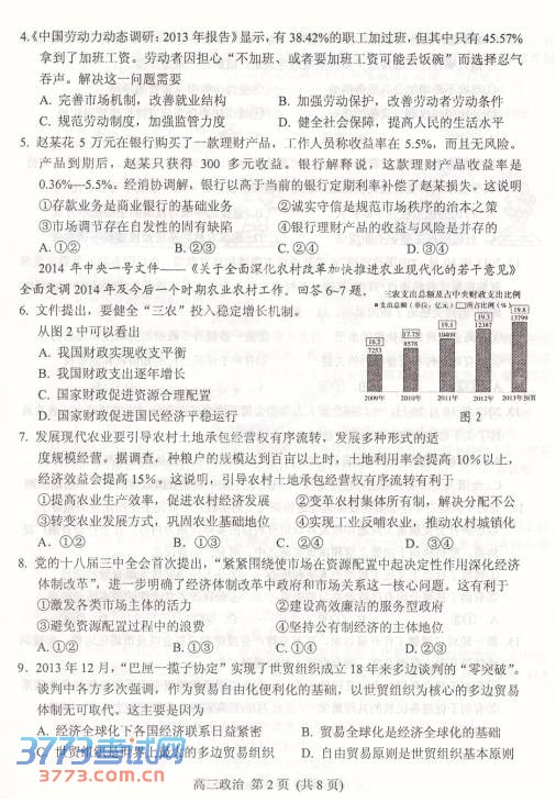江苏省无锡四市(苏锡常镇)2014届高三第一次模拟政治试题(扫描版)