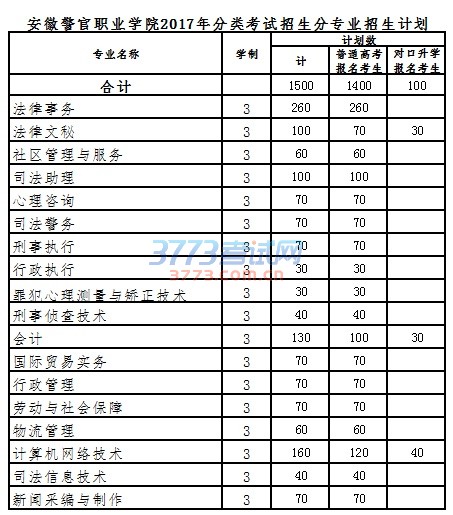 2017年我院分类考试招生总计划为1500名,分18个专业,文理兼收。具体分专业计划见下表(以安徽省教育厅公布计划为准):