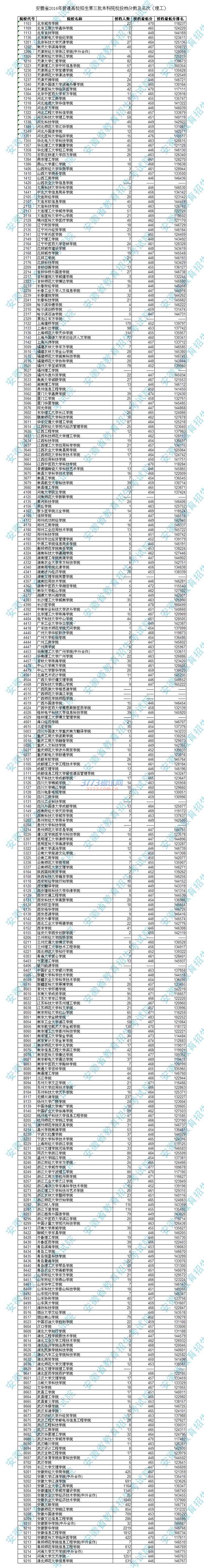 安徽省2016年普通高校招生第三批本科院校投档分数及名次(理工)