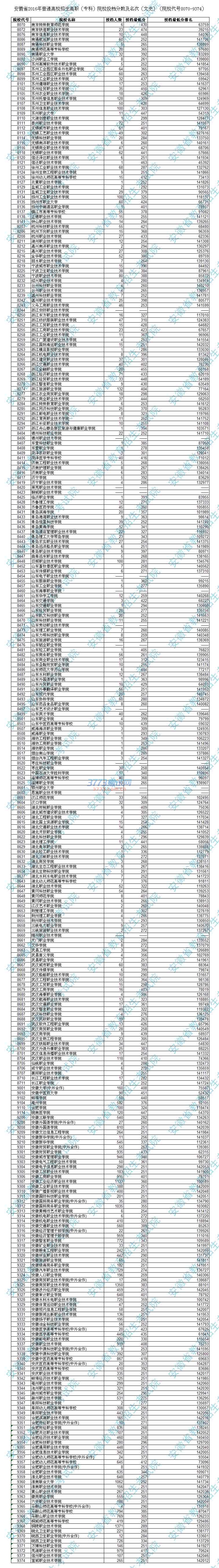 安徽省2016年普通高校招生高职(专科)院校投档分数及名次(文史)(院校代号8070-9374)