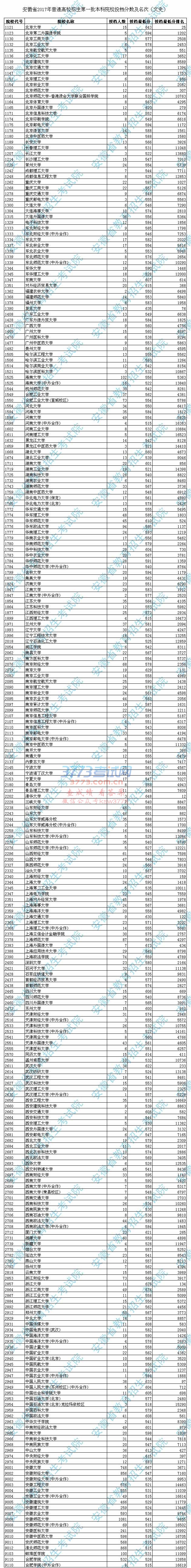 安徽省2017年普通高校招生第一批本科院校投档分数及名次(文史)