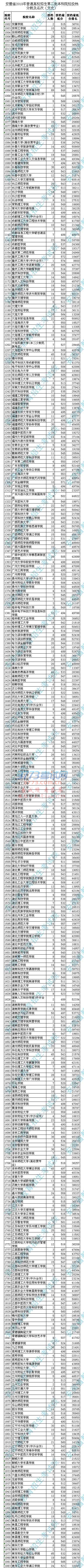 安徽省2018年普通高校招生第二批本科院校投档分数及名次(文史)