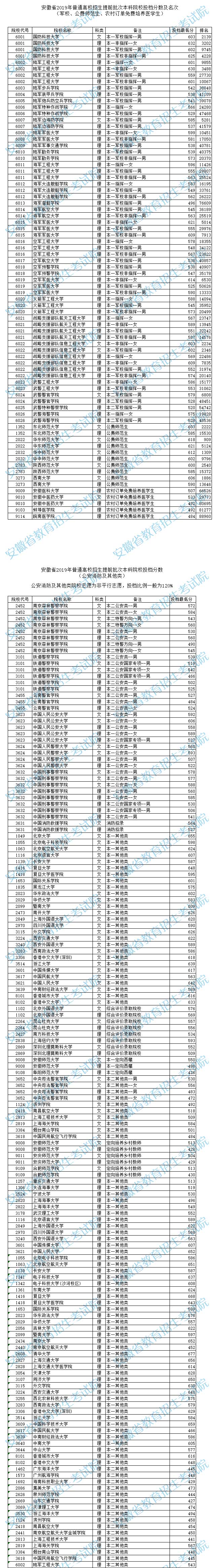 安徽省2019年普通高校招生提前批次本科院校投档分数及名次