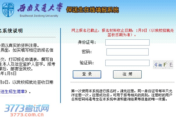 西南交通大学2014年保送生初审结果已公布,请考生登录报名系统查询。