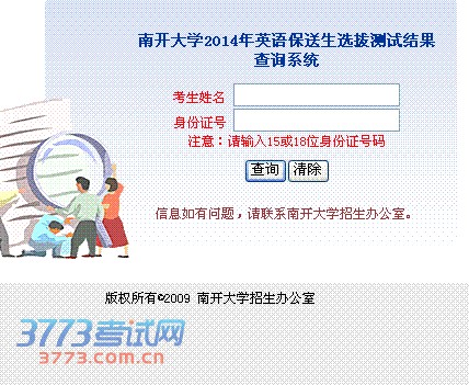南开大学2014年英语保送生测试结果查询系统(点击进入)