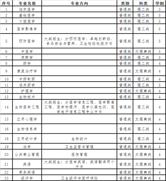 2.体检标准按照教育部、卫生部、中国残疾人联合会印发的《普通高等学校招生体检工作指导意见》的通知执行。医药类、生物科学类各专业,生物医学工程、应用心理学不招收色盲、色弱学生。